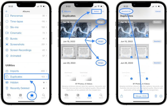 ومن هذه الطرق هي حذف بعض الصور المتكررة في جهاز الايفون الخاص بك ويمكن أن تساعد إزالة الصور المتكررة من جهاز الـ iPhone في تحرير مساحة تخزين قيمة وتنظيم مكتبة الصور الخاصة بك وهذه طريقة لتوفير بعض المال بدلاً من شراء مساحة تخزين اضافية من iCloud ولحسن الحظ ، هناك عدة طرق يمكنك استخدامها لإنجاز هذه المهمة ومن هذه الطرق السهلة والصعبة وفيما يلي بعض الطرق الفعالة لإزالة صور iPhone المكررة: